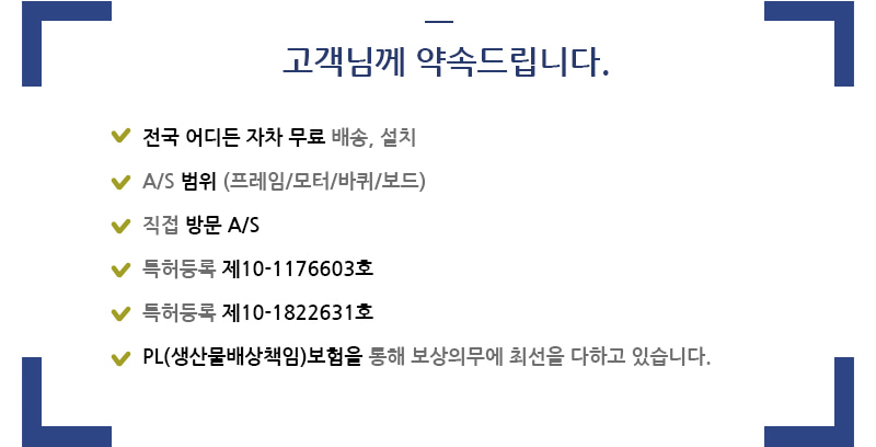 • A/S 보증기간 : 프레임,모터,바퀴,보드 2년 A/S 무상 (그 외 유상)