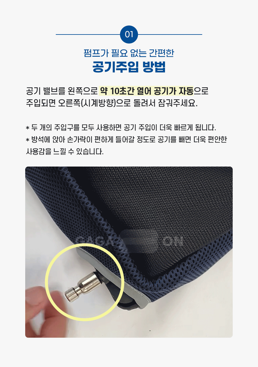 7. 공기를 주입하여 사용하는 제품의 공기를 주입한 경우.